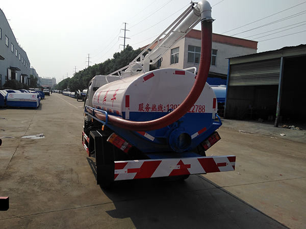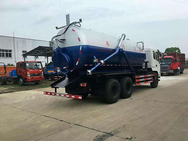 吸污車專用部分由取力器、傳動(dòng)軸、真空吸污泵、壓力罐體、液壓部分,管網(wǎng)系統(tǒng)、真空壓力表、視糞窗、洗手裝置等組成,隨車配置大功率真空吸污泵和優(yōu)質(zhì)液壓系統(tǒng),罐體封頭一次壓鑄成型、罐體可后開、雙頂自卸。罐內(nèi)污物可通過后蓋直接傾倒,具有真空度高(比吸糞車的吸力更大)、噸位大、效率高、用途更廣泛的特點(diǎn)。