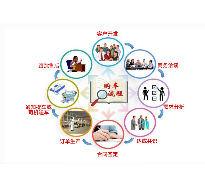 2、購車流程: | 1、咨詢洽談(電話洽談或來廠考察洽談) 2、簽訂汽車購銷合同(傳真、郵遞或者來廠簽訂) 3、我廠按時(shí)按質(zhì)生產(chǎn) 4、交付驗(yàn)收 >>點(diǎn)擊查看詳細(xì)內(nèi)容 |