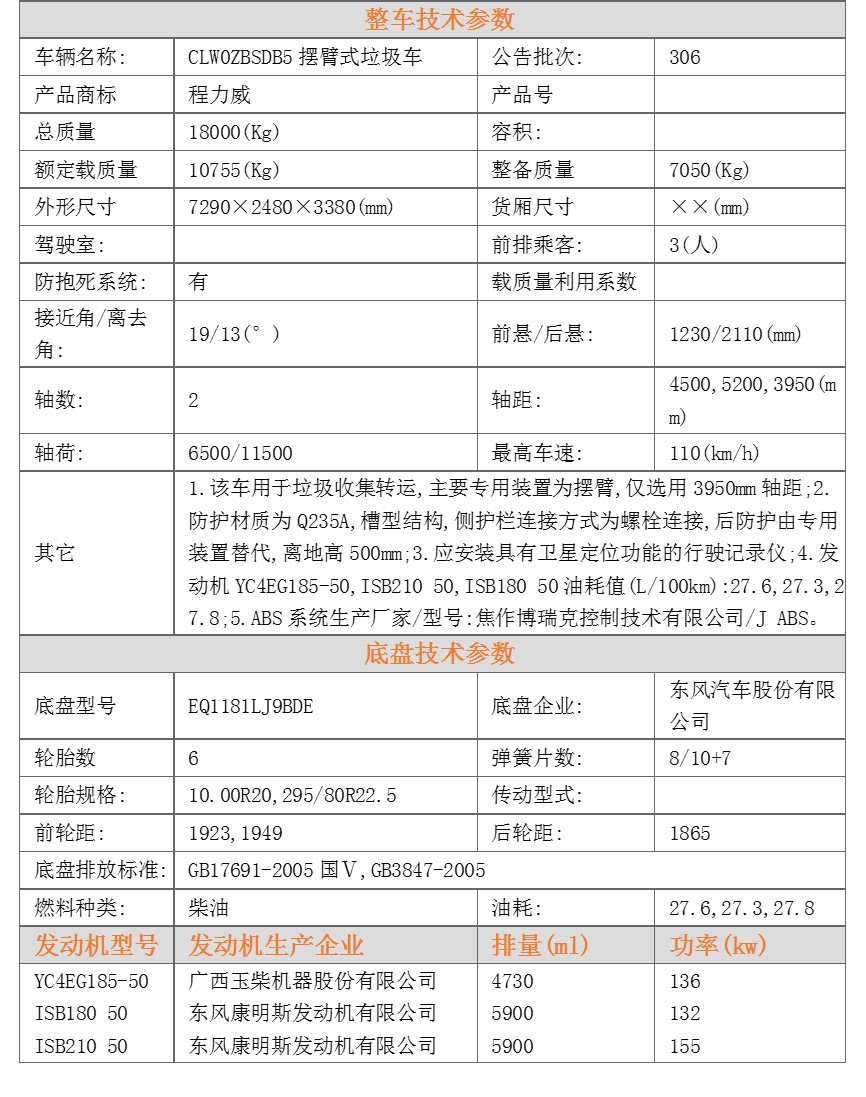 東風T3 14方擺臂垃圾車 售后服務說明 | |