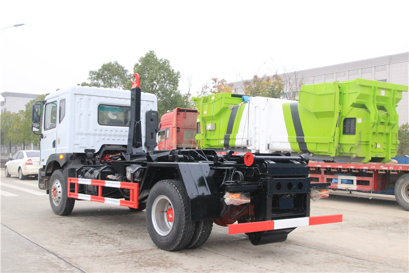 鉤臂垃圾車又稱為車廂可卸式垃圾車,用全液壓控制操作系統(tǒng),垃圾廂與底盤可徹底分離,具有結(jié)構(gòu)合理,操作簡便、穩(wěn)定、使用效率高、密封性能好、傾倒方便等優(yōu)點,能實現(xiàn)一臺車與多個垃圾廂聯(lián)合作業(yè),循環(huán)運輸,充分提高車輛的運輸能力。主要適用于市政環(huán)衛(wèi)、物業(yè)管理、大型廠、工礦等各種場所收集、運載各種垃圾。