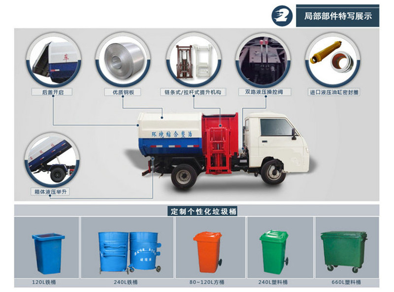 掛桶垃圾車 又名自裝卸式垃圾車, 由密封式垃圾廂、液壓系統(tǒng)、操作系統(tǒng)組成。舉升油制缸垃圾廂可自吊上放下,上下一次工作循環(huán)時(shí)間≤50秒。一輛車可配幾十個(gè)垃圾桶,實(shí)現(xiàn)一臺車與多個(gè)垃圾桶聯(lián)合作業(yè),循環(huán)運(yùn)輸,充分提高了車輛的運(yùn)輸能力,特別適用于短途運(yùn)輸,如環(huán)衛(wèi)部門對城鎮(zhèn)垃圾的清理、運(yùn)輸?shù)取?/span>