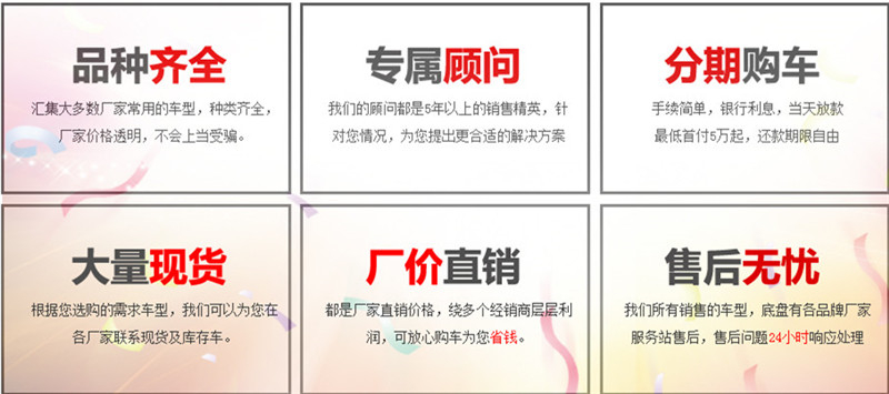本廠常年儲備各類現(xiàn)車,預付定金即可發(fā)車,車到付全款,無憂售后,全國送車!