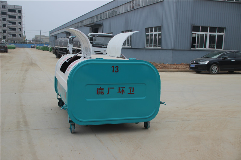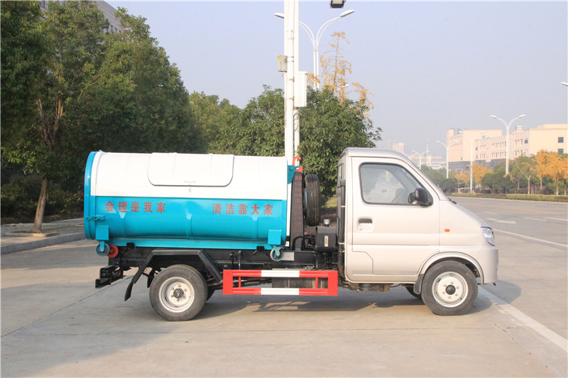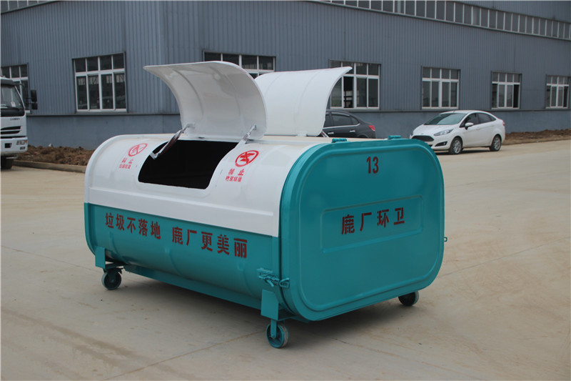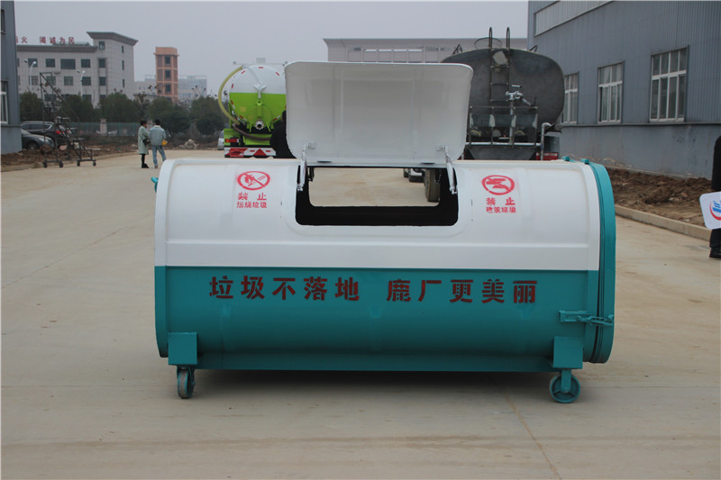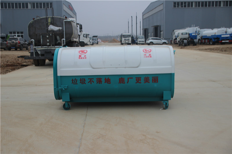3方勾臂垃圾箱箱體材質:優(yōu)質碳鋼,邊板2mm,底板3mm,帶啟動撐桿,尾部密封條鎖緊。