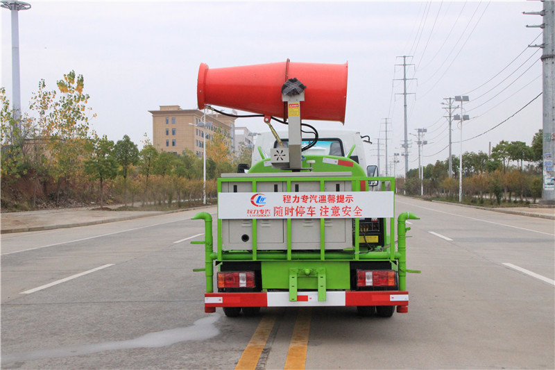 噴霧降塵車,抑塵效果約為普通灑水車的30倍,一臺噴霧降塵車的工作直徑可覆蓋4個(gè)標(biāo)準(zhǔn)足球場。水箱中的水經(jīng)過霧化后,由高壓風(fēng)機(jī)噴出,水霧顆粒極為細(xì)小,達(dá)到了微米級,其吸附力也增加了3倍,耗水量卻降低了70%,遭遇霧霾天氣、空氣質(zhì)量PM2.5嚴(yán)重超標(biāo)時(shí),進(jìn)行液霧降塵、可分解淡化空氣中的顆粒濃度、將飄浮在空氣中的污染顆粒物、塵埃等迅速逼降地面,達(dá)到清潔凈化空氣的效果。