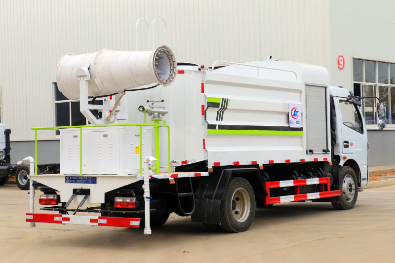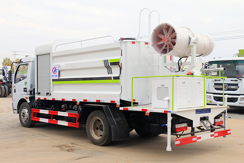 噴霧降塵車,抑塵效果約為普通灑水車的30倍,一臺噴霧降塵車的工作直徑可覆蓋4個標(biāo)準(zhǔn)足球場。水箱中的水經(jīng)過霧化后,由高壓風(fēng)機(jī)噴出,水霧顆粒極為細(xì)小,達(dá)到了微米級,其吸附力也增加了3倍,耗水量卻降低了70%,遭遇霧霾天氣、空氣質(zhì)量PM2.5嚴(yán)重超標(biāo)時,進(jìn)行液霧降塵、可分解淡化空氣中的顆粒濃度、將飄浮在空氣中的污染顆粒物、塵埃等迅速逼降地面,達(dá)到清潔凈化空氣的效果。