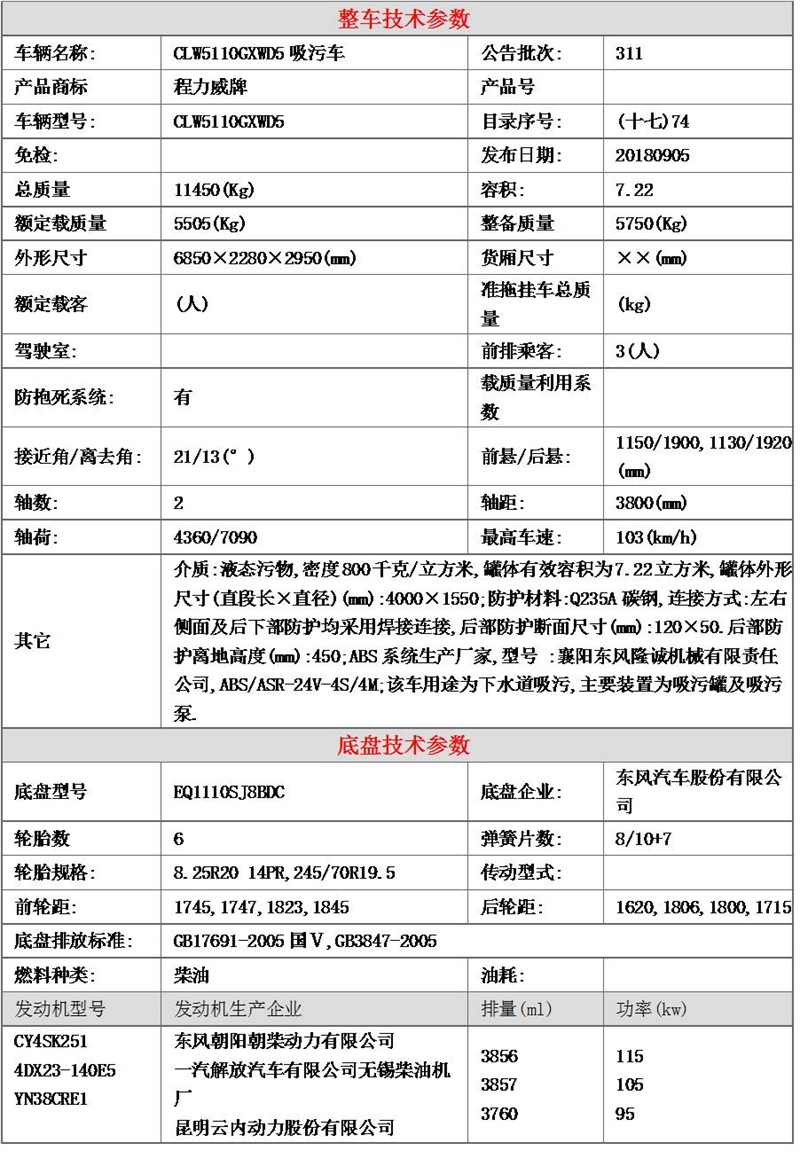 東風(fēng)8方吸污車罐體容積8方,罐體采用國標(biāo)6mm厚武鋼碳鋼板,SK-9水循環(huán)真空吸污泵,罐體封頭一次壓鑄成型,采用自動焊接技術(shù),罐體后蓋可液壓開啟、鎖緊,罐尾帶直徑100mm排污球閥,排污球閥可加裝駕駛室內(nèi)氣動控制,中置雙頂液壓自卸,罐內(nèi)污物可打開后蓋后直接傾倒,也可通過真空泵對罐內(nèi)加壓進行強排,帶8米4寸鋼絲橡膠吸污管一根。其余標(biāo)配為:取力器、傳動軸、四通球閥、多路換向閥、排污閥、視污窗、真空壓力表、管網(wǎng)系統(tǒng)、液壓系統(tǒng)、洗手裝置、泄壓閥、防溢閥等組成。