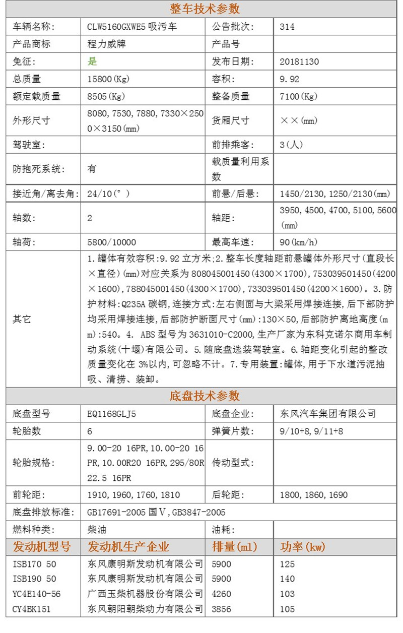 東風(fēng)153(老款) 10方吸污車 售后服務(wù)說明 | |