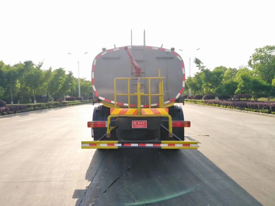 前噴后灑,前裝有鴨形噴嘴或圓頭沖嘴,后面裝有圓柱開灑水噴嘴或蓮蓬頭噴嘴,后部有一工作平臺(tái),裝配有高壓水炮。后部還可裝8個(gè)噴嘴(選裝)噴水器一般用于沖洗街道。