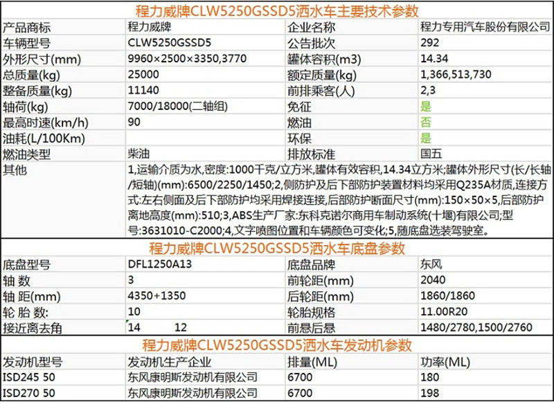 東風(fēng)天龍后雙橋21立方綠化噴灑車,采用的是東風(fēng)天龍后雙橋底盤,4350+1350mm軸距,可選擇康明斯245馬力或270馬力發(fā)動(dòng)機(jī),(型號(hào):ISD245 50 ISD270 50)大同7檔變速箱,11.00R20鋼絲胎,帶空調(diào),前橋7噸后橋10噸。
