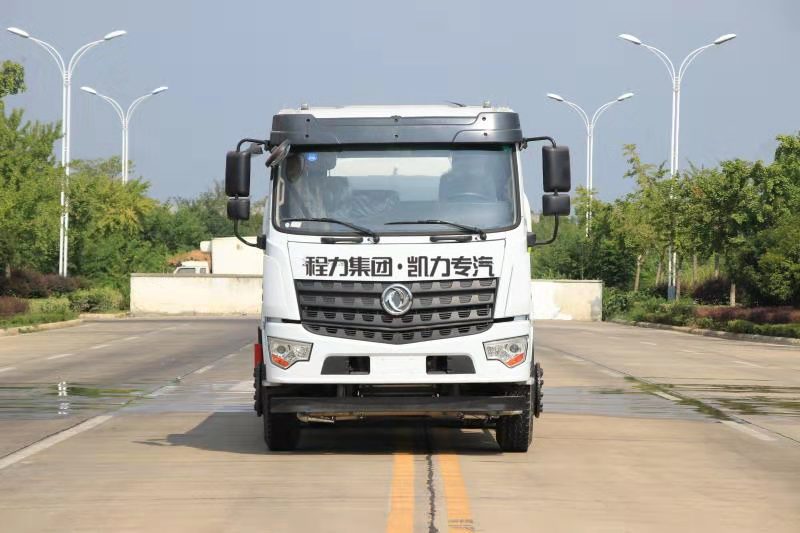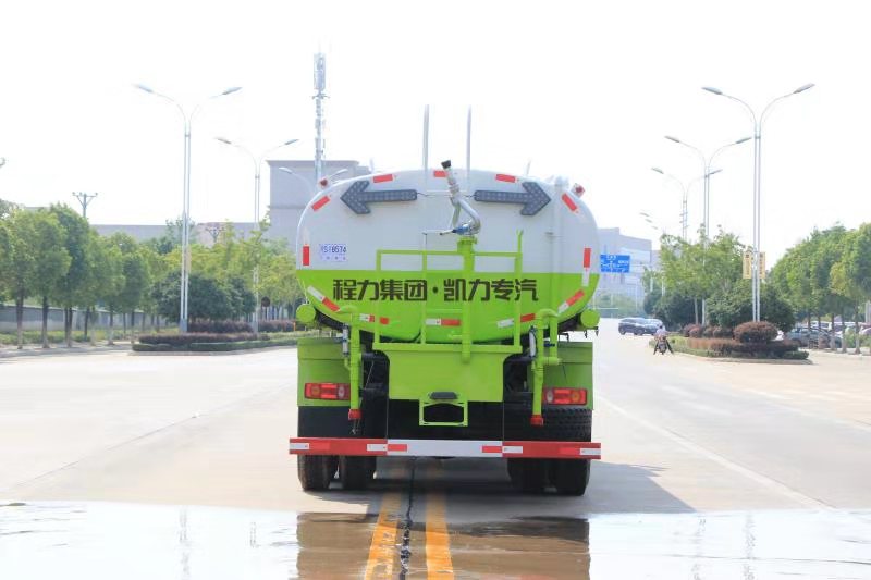 前噴后灑,前裝有鴨形噴嘴或圓頭沖嘴,后面裝有圓柱開(kāi)灑水噴嘴或蓮蓬頭噴嘴,后部有一工作平臺(tái),裝配有高壓水炮。后部還可裝8個(gè)噴嘴(選裝)噴水器一般用于沖洗街道。